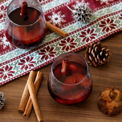 みかんを使って手軽に作れる大人のホットドリンクがこちら。赤ワインに皮を剥いたみかんとはちみつ、スパイスを加えたホットワインは、寒い日にぴったり。しっかり煮立たせてアルコールを飛ばすので、お酒が得意ではない方にも飲みやすい一品となります。グラスに入れたみかんと赤ワインの組み合わせは、見た目もオシャレ。ちょっとしたティータイムにおすすめです。