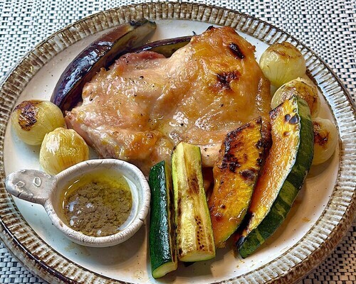 カリッと焼けた鶏肉に彩り野菜を添えたチキンステーキは、食卓がパッと華やぐ一品。マルチグリルをお持ちの方は、ロティプレートで鶏もも肉の皮目をパリッと香ばしく焼き上げると、食べた時に旨みがジュワッと広がります。白ワインビネガーとアンチョビの風味を効かせた特製ソースをかければ、まるでレストランのような味わいに。茄子やカボチャなど焼き野菜を添えて栄養バランスもバッチリ。家族の週末ごはんや、ちょっと気分を変えたい日のメインディッシュにぴったりです。
