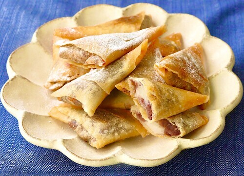 ちょっと小腹が空いたときにおすすめしたい、残りおもちを使ったアレンジ料理ならこちらをチェック。春巻きの皮に粒あんと切り餅をのせて包み、こんがり揚げればパリパリ食感が病みつきになるおやつに大変身。一口サイズで見た目も可愛らしく、小豆粥やぜんざいとはまた違う味わいを楽しめます。