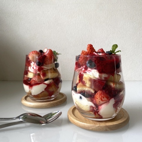 旬のいちごをたっぷり楽しめる「ベリーのグラスパフェ」は、冬のホームパーティーに登場させたくなる華やかスイーツ。カットしたスポンジ、生クリーム、いちごやブルーベリーをグラスに重ねていくだけで、あっという間にフォトジェニックな見た目に。もちろん、お子さまと一緒に盛りつけを楽しむのもおすすめです。赤と白のコントラストでクリスマスにもバッチリ。テーブルを明るく彩る存在感で、食後のデザートにすれば盛り上がりそうです。