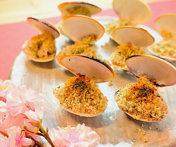 お吸い物で使われることの多いはまぐりを、香草パン粉で香ばしく焼き上げた一品。ノーリツのガスコンロ「マルチグリル」に付属のロティプレートを使えば、手軽に仕上がります。外はサクッと、中はふっくらとしたはまぐりの旨みが楽しめ、ひな祭りの食卓に華やかなアクセントを添えてくれます。