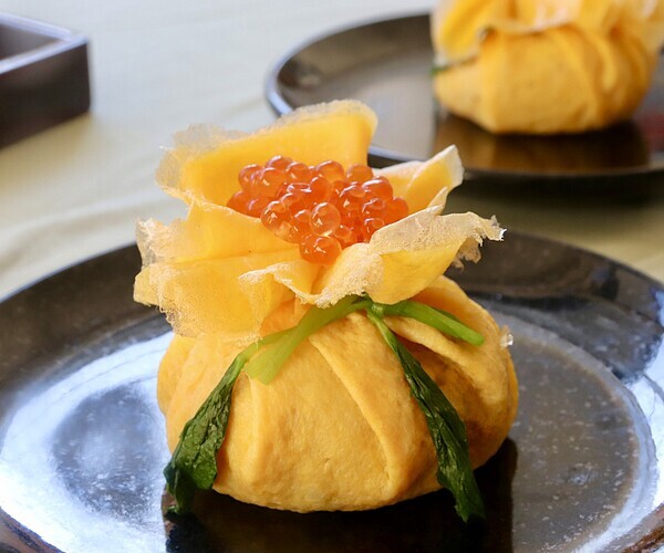 ▼見た目も華やか、祝いの「巾着寿司」