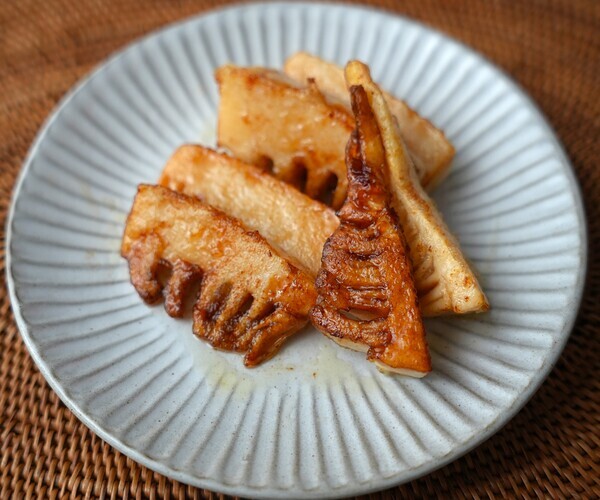 ▼香ばしさが食欲をそそる「たけのこバターしょうゆ焼き」
